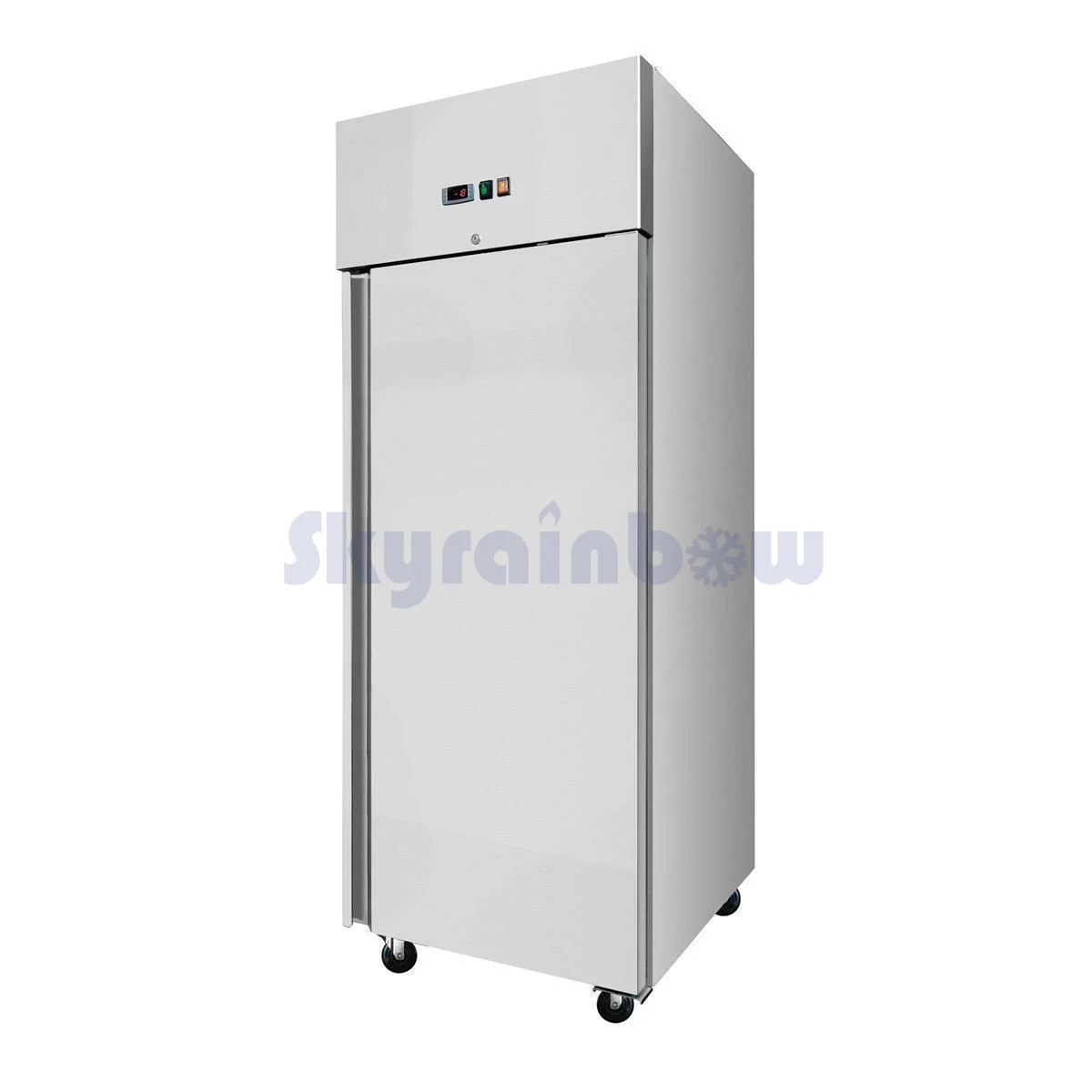 Der Skyrainbow Umluft Kühlschrank aus Edelstahl mit einer Tür ist perfekt geeignet für Großküchen und Restaurants, um Lebensmittel zu