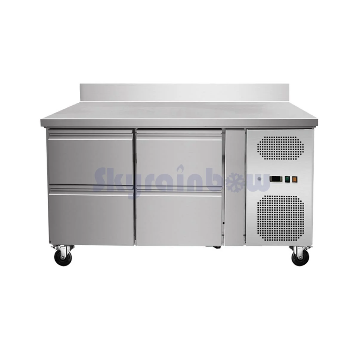 Skyrainbow Umluft Kühltisch mit 4 Schubladen und Aufkantung, -2° bis +8° C, 1360 x 700 x 860/960